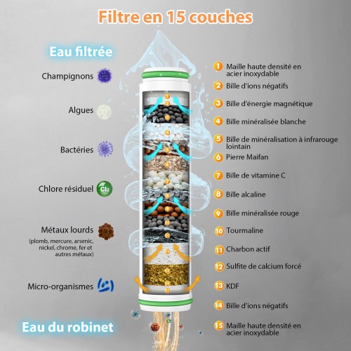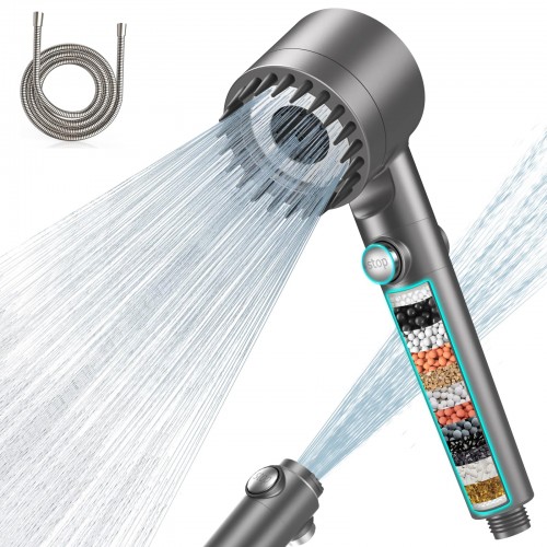 [Filtration avancée en 15 étapes] Les pommeau de douche MEKO avec tuyau sont équipés d'un puissant système de filtration en 15 étapes, incluant du charbon actif de haute qualité et de la vitamine C pour protéger votre peau et vos cheveux. Équipé d'un bouton d'arrêt immédiat, le pommeau de douche permet d'interrompre le flux d'eau d'une simple pression, facilitant ainsi l'économie d'eau et d'énergie. Nous vendons des filtres de remplacement par lot de 2, recherchez sur Amazon : B0CP1RJ2NY